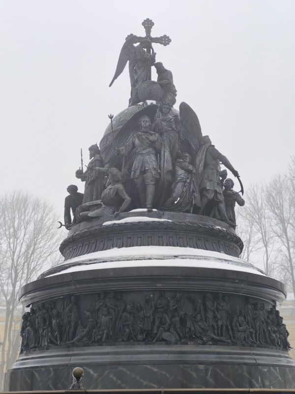 Памятник «Тысячелетие России» (1862 г.) — монументальное сооружение высотой около 16 м, украшенное 128 фигурами. На нём запечатлены цари, императоры, просветители, военные, писатели и художники, олицетворяющие важнейшие вехи истории государства с IX по XIX век.